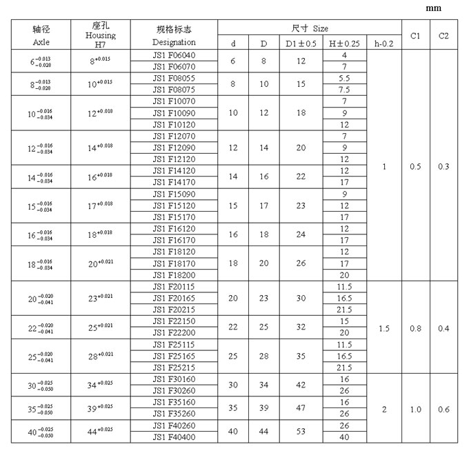 JS1 系列軸承標(biāo)準(zhǔn)尺寸