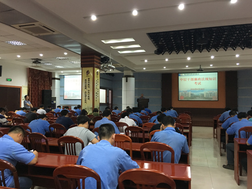 2016年6月28日,為檢驗中層干部學習效果,公司黨委組織85名中層干部參加廉政法規知識考試,內容涵括《中國共產黨章程》、《中國共產黨紀律處分條例》、《中國共產黨廉潔自律準則》、《黨政領導干部選拔任用工作條例》、《中央政治局關于改進工作作風、密切聯系群眾的八項規定》、《關于實行黨風廉政建設責任制的規定》、《關于實行黨政領導干部問責的暫行規定》、《關于嚴格禁止利用職務上的便利謀取不正當利益的若干規定》、《關于嚴禁黨政機關及其工作人員在公務活動中接受和贈送禮金、有價證券的通知》、《關于認真貫徹執行〈國務院關于在對外公務活動中贈送和接受禮品的規定〉的通知》、《關于領導干部報告個人有關事項的規定》、《關于對配偶子女均已移居國(境)外的國家工作人員加強管理的暫行規定》、《關于對黨和國家機關工作人員在國內交往中收受禮品實行登記制度的規定》、《關于黨政機關工作人員個人證券投資行為若干規定》、《國有企業領導人員廉潔從業若干規定》、《國家行政機關及其工作人員在國內公務活動中不得贈送和接受禮品的規定》、《中華人民共和國刑法》等。