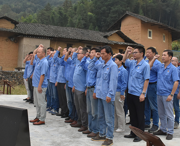 ????2019年10月26日,公司黨委組織成品五車間黨支部及金田黨總支車工一車間黨支部、車工二車間黨支部、鍛工車間黨支部等4個黨支部45名黨員來到南靖縣梅林鎮科嶺紅色根據地開展“不忘初心、牢記使命”主題教育。