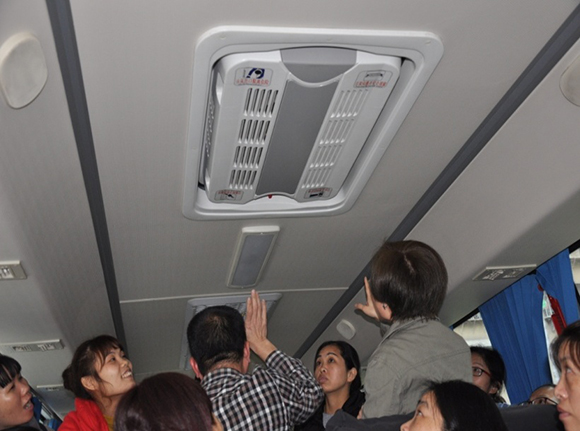 首先由大巴車駕駛員講解大巴應急門、車頂窗的開啟方法、安全錘的使用方法及滅火器擺放位置,然后由環安部安全員講解滅火器的操作及使用規范和后窗玻璃逃生方法。現場演練模擬公司通勤廠車因故障著火并迅速蔓延,車廂內濃煙滾滾,車門因電氣故障無法打開,大巴駕駛員立即打開應急車門,組織乘車員工有序撤離,同時向綜合部主管報告事故情況。綜合部主管判斷現場情況后,立即啟動《綜合應急預案》,組織各應急救援小組立即趕赴現場,展開應急響應。