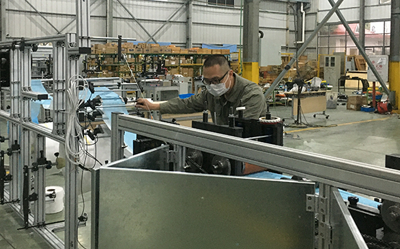 2020年2月7日以來,新型冠狀病毒感染肺炎疫情防控進入關鍵階段,公司積極響應漳州市委、市政府千方百計提升防護物資產能的號召,聯手福建明鑫智能科技股份有限公司聯合研發日產10萬個醫用口罩生產線。在研制團隊的努力下,2月17日即完成生產線組裝,2月27日完成8條生產線調試,有效解決醫用口罩生產線“一機難求”的難題。