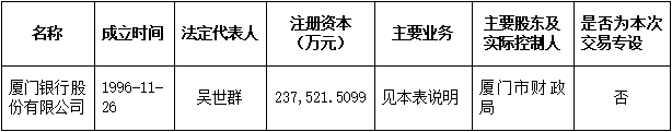 (二) 廈門銀行股份有限公司為非上市金融機構,其基本信息如下: