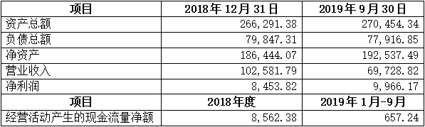注:公司2019年9月30日的財務數據未經審計