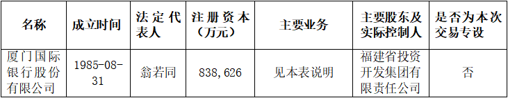 (一)廈門(mén)國(guó)際銀行股份有限公司為非上市金融機(jī)構(gòu),其基本信息如下: