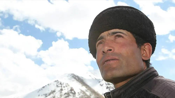 爺爺凱力迪別克是紅其拉甫邊防連最早的向?qū)В彩撬俗逯凶钤缫慌尤胫袊?guó)共產(chǎn)黨的老黨員。爺爺年齡大了,給邊防戰(zhàn)士做向?qū)У膿?dān)子就落到拉齊尼父親的肩上;父親一干就是32年,行程約4萬(wàn)公里,足跡踏遍防區(qū)每一個(gè)角落。