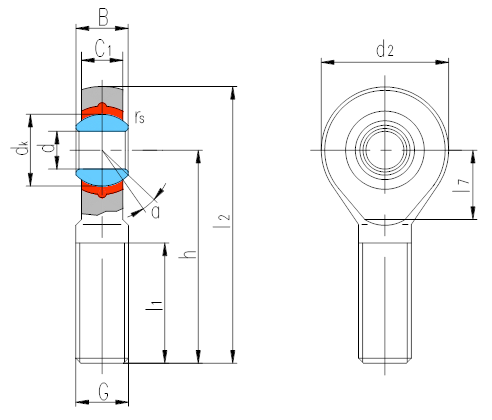 產品特點:自潤滑組裝桿端關節軸承是由桿端體、內圈和PTFE塑料組成,桿端體材料是碳鋼,表面鍍鋅,無需潤滑;內圈材料是軸承鋼,淬火,球面鍍硬鉻。
