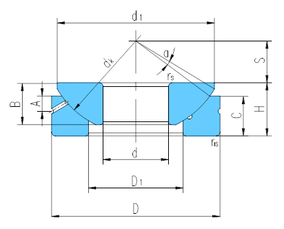 d | D | B | C | H | dk | S | d1 max | D1 min | A | rs,r1s min | α? ≈ | 動載荷 Dynamic | 靜載荷 Static | ||
