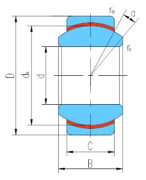 產品特點:內、外圈材料均為軸承鋼,淬火,球面襯有PTFE塑料,內圈球面鍍硬鉻。