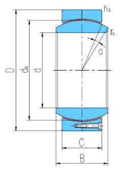 產(chǎn)品特點(diǎn):外圈徑向分為兩半,用螺釘鎖緊,材料為碳鋼,磷化,球面粘貼PTFE編織物;內(nèi)圈材料為軸承鋼,淬火,球面鍍硬鉻。