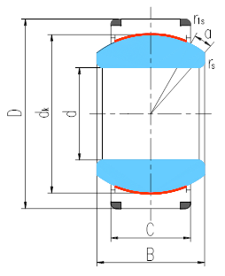 產(chǎn)品特點:外圈沿軸向剖分成兩半,用鎖圈固定,外圈材料為軸承鋼,淬火,球面粘貼PTFE編織物;內(nèi)圈材料為軸承鋼,淬火,球面鍍硬鉻,后置代號有-2RS為外圈兩端帶有密封圈。