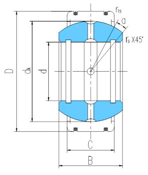 產品特點:外圈沿軸向剖分成兩半,用鎖圈固定,內、外圈材料均為軸承鋼,淬火,內圈球面鍍硬鉻,外圈兩端帶有密封圈。