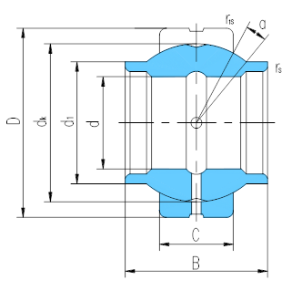 *僅外圈有潤滑槽孔。內徑d≥φ15mm,可提供帶密封圈的向心關節軸承。