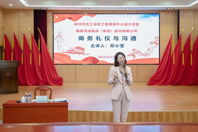 為進(jìn)一步提升職能部門技術(shù)管理人員綜合職業(yè)能力,塑造龍軸集團(tuán)良好形象,在市總工會的大力支持下,公司于3、4月開展2023年度職工素質(zhì)提升公益大講堂暨政務(wù)、商務(wù)禮儀知識專題培訓(xùn),邀請國際認(rèn)證形象顧問、國家高級政務(wù)禮儀指導(dǎo)師、國際注冊高級禮儀培訓(xùn)師陳燕和漳州城市職業(yè)學(xué)院副教授、國家認(rèn)證一級形象設(shè)計師鄭小瑩分別進(jìn)行政務(wù)禮儀和商務(wù)禮儀培訓(xùn)。公司領(lǐng)導(dǎo)及相關(guān)職能部門人員參加。