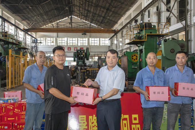 近日,氣溫持續攀升,為更好地關心關愛一線生產職工,2024年7月22日,龍軸集團黨委書記、董事長陳晉輝帶領領導班子成員分四組深入生產一線車間開展“夏送清涼 保安康”慰問活動。公司黨委副書記、總經理陳志雄,黨委委員、常務副總經理鄭長虹,黨委副書記、工會主席陳紀鵬,黨委委員、副總經理張逸青,財務總監曾四新,總工程師林振元參加慰問。