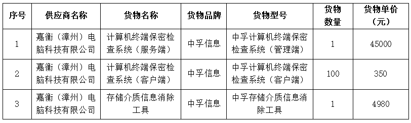 1.供應商名稱:嘉衡(漳州)電腦科技有限公司