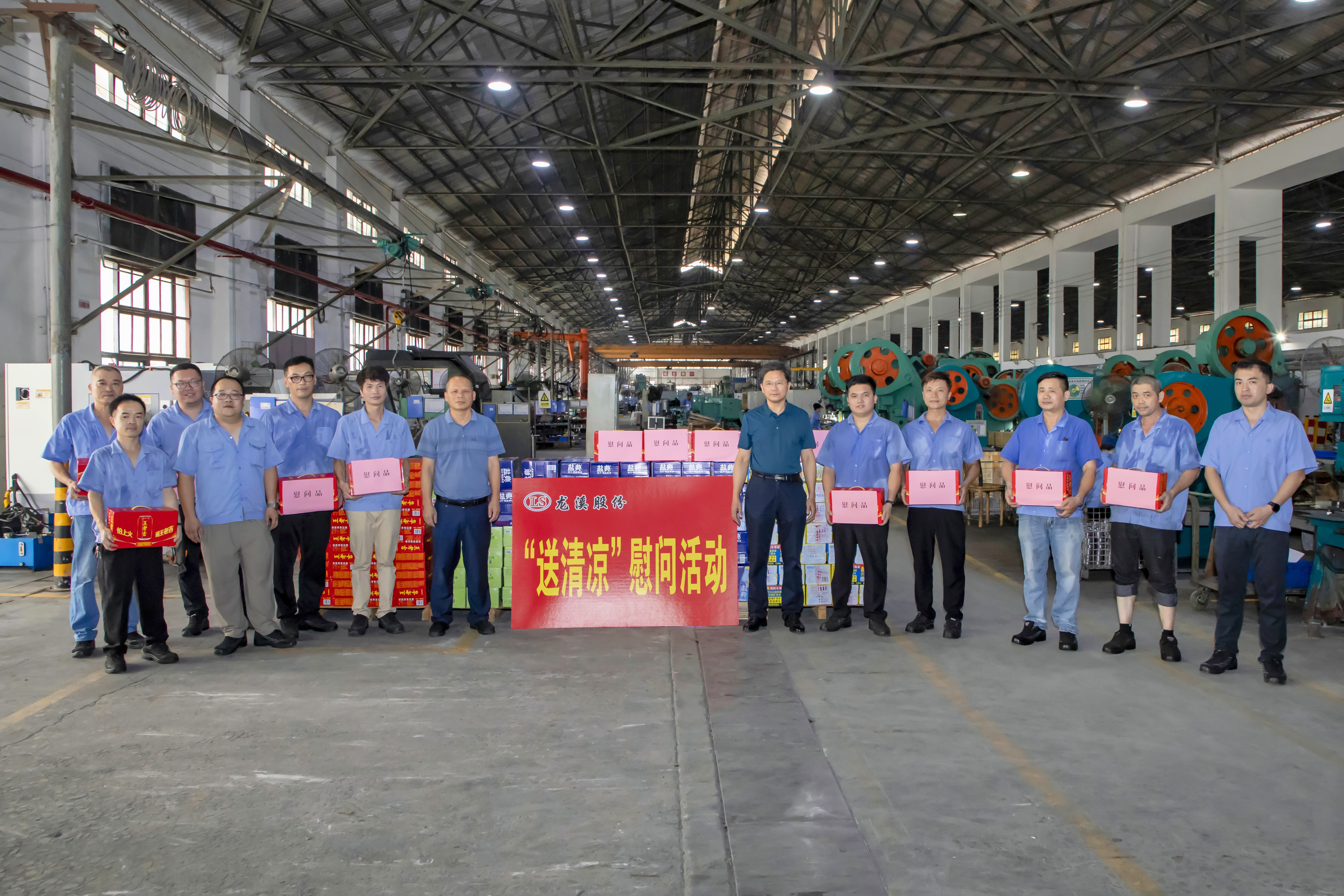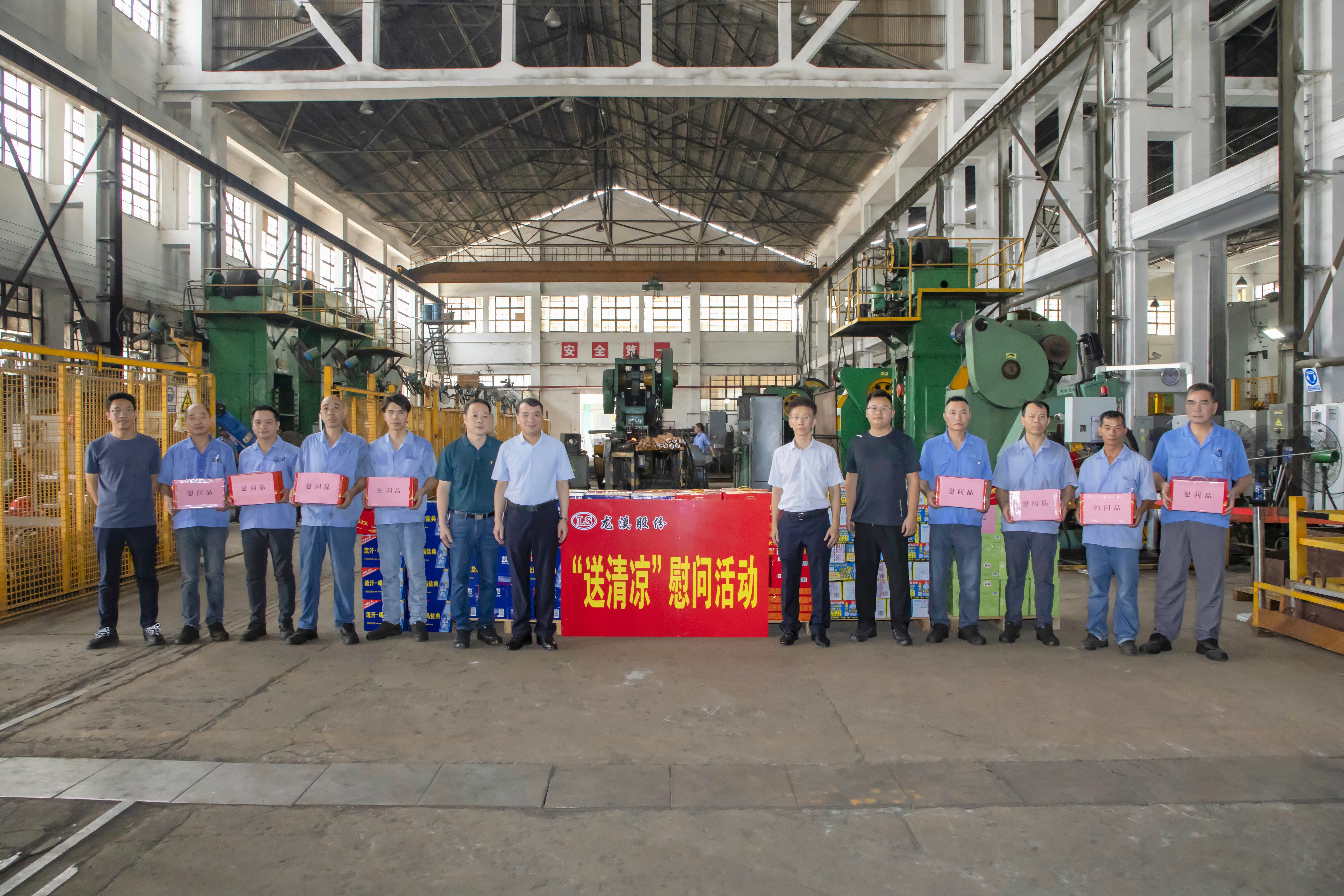 連日來,高溫天氣持續,熱浪席卷廠區。為切實做好一線員工關懷工作,2025年7月17日,集團黨委書記、董事長陳晉輝,黨委副書記、總經理陳志雄帶領領導班子成員分四組深入各生產車間開展 “送清涼” 慰問活動,為高溫崗位員工送去防暑降溫物資和誠摯問候,讓員工感受到企業的關懷與溫暖。