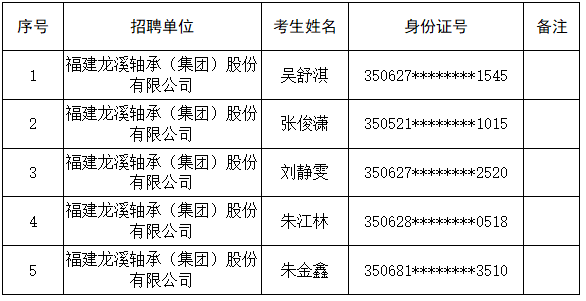福建龍溪軸承(集團(tuán))股份有限公司關(guān)于2026年第一批“市屬國(guó)有企業(yè)優(yōu)質(zhì)人才儲(chǔ)備庫(kù)”擬聘用人員的公示
