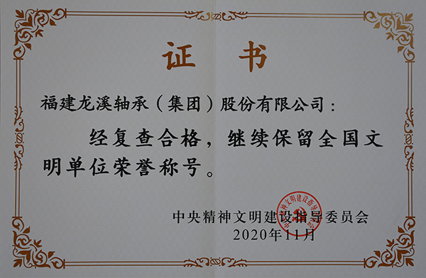 2020年11月,公司通過復查榮獲第六屆“全國文明單位”榮譽稱號。