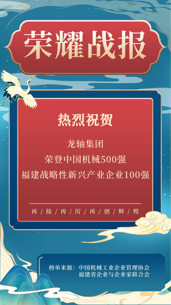 公司以雄厚的規(guī)模力、出色的效率力、強大的成長力和豐富的資源力再度獲評中國機械500強、福建戰(zhàn)略性新興產業(yè)企業(yè)100強,已連續(xù)15年上榜中國機械500強,連續(xù)3年上榜福建戰(zhàn)略性新興產業(yè)企業(yè)100強。