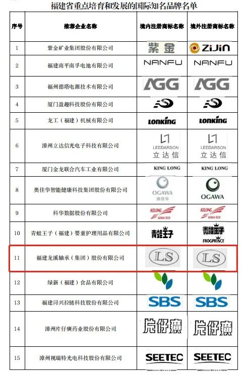 入選福建省重點培育和發(fā)展的國際知名品牌
