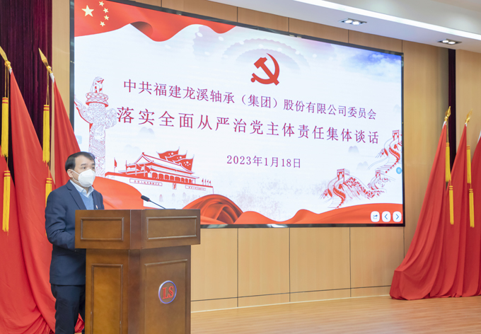 2023年1月18日,龍軸集團黨委書記、董事長陳晉輝就落實全面從嚴治黨主體責任,與公司領導班子成員、中層干部及權屬企業(yè)永軸公司、三齒公司班子成員進行集體談話。