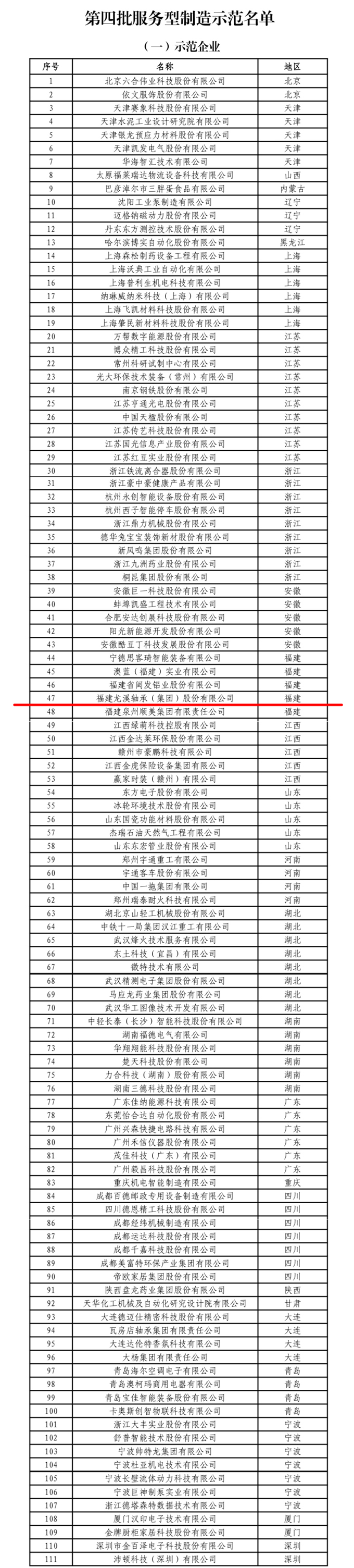 近日,工業和信息化部公布第四批服務型制造示范企業名單,龍軸集團為福建省入選的五家企業之一。