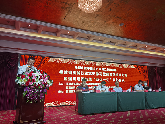2021年7月29日,在福建省委組織部、省委“兩新”工委和省工信廳社會組織行業(yè)黨委的關(guān)心指導(dǎo)下,省機械行業(yè)慶祝中國共產(chǎn)黨成立100周年黨史學(xué)習(xí)教育典型經(jīng)驗交流暨強黨建促發(fā)展“兩優(yōu)一先”表彰會議在泉州隆重召開。