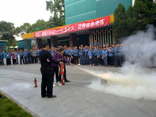為進(jìn)一步貫徹《漳州市人民政府辦公室關(guān)于切實加強今冬明春消防安全工作的通知》和公司《關(guān)于進(jìn)一步開展消防安全大排查大整治行動的通知》精神,積極打造平安企業(yè)和幸福龍軸,提高公司防火滅火能力,提高員工防災(zāi)意識和安全自救能力,使員工在遇到火災(zāi)等突發(fā)情況時,能夠在短時間內(nèi)有條不紊地緊急疏散。2013年11月28日下午16:00時,公司在廠區(qū)第一聯(lián)合廠房(成品三車間)按計劃進(jìn)行了一場滅火、疏散應(yīng)急演練,演練前公司首先制定了活動方案,成立了由總經(jīng)理擔(dān)任總指揮張副書記擔(dān)任副總指揮的指揮小組,并邀請了省消防協(xié)會的闕教官進(jìn)行短時間的培訓(xùn),講解相關(guān)消防知識和消防器材的使用方法,傳授消防逃生的應(yīng)變技能和自我保護(hù)技能,明確了各演練職能小組的職責(zé)和演練小組的疏散路線。