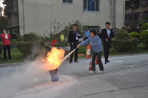 緊接著指揮人員讓參加演練的人員在大樓前集中,教官現(xiàn)場講解和演示用干粉滅火器滅火的要領(lǐng),并讓參演人員使用干粉滅火器現(xiàn)場滅火體驗。演練結(jié)束后,安全管理部人員就本次演練活動進(jìn)行了分析和小結(jié)。