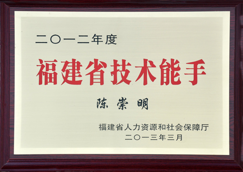 日前,省人社廳正式公布2012年度“福建省技術能手”表彰名單,據悉,經過各設區市、省有關行業、省競賽組委會推薦申報和初審、專家評審會評審認定、省人社廳研究決定、公示等程序嚴格評選,此次“福建省技術能手”共表彰144名同志,我司員工陳崇明榜上有名。