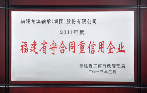 近日,公司在福建省工商局2011年度福建省守合同重信用企業創建活動中獲得“福建省守合同重信用企業”榮譽稱號。