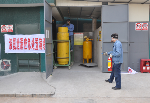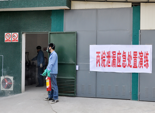 2013年3月14日下午,公司安全管理部按危險化學品危險源監控管理要求,藍田熱處理車間丙烷、液氨供氣點組織開展 “丙烷泄漏應急處置”、“液氨泄漏應急處置”兩場演練。